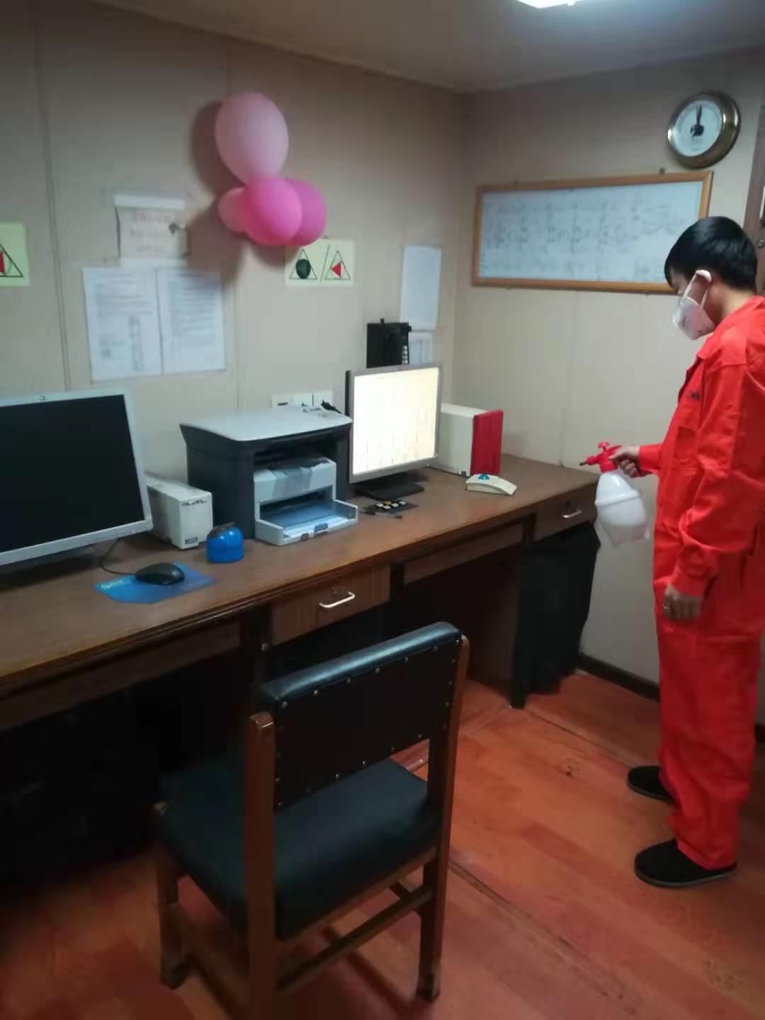3、加強船舶及個人衛(wèi)生清潔消毒。對餐廳、廚房與菜庫等衛(wèi)生死角進行徹底清潔,每天定時對船舶公共區(qū)域進行消毒,特別是每次靠港期間對梯口、理貨室與辦公室等重點場所進行消毒。定期檢查船員個人房間衛(wèi)生、要求船員勤洗手、勤洗澡、勤換洗衣物。
