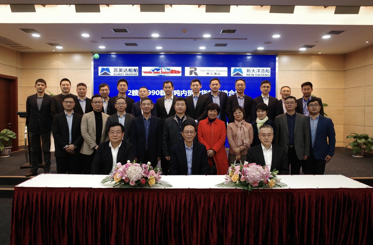 11 月 19 日,南京江海集團有限公司、南京兩江海運股份有限公司與蘇美達船舶有限公司及所屬新大洋造船有限公司簽署2艘59990噸內(nèi)貿(mào)散貨船建造協(xié)議,簽約儀式在蘇美達大廈四樓會議室舉行。江海集團、兩江海運董事長許陽華,江海集團總經(jīng)理、黨委書記祁京曉,兩江海運總經(jīng)理奚海洋,蘇美達集團總經(jīng)理、黨委副書記金永傳,蘇美達船舶董事長徐鋼、總經(jīng)理徐斌及其他相關(guān)嘉賓參加儀式。